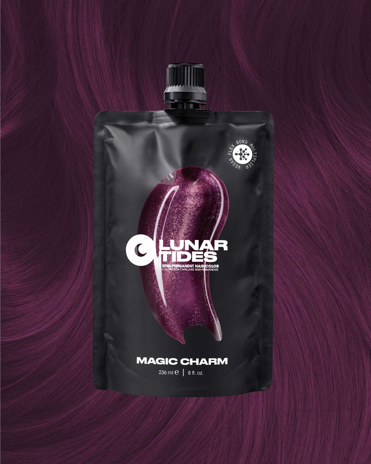 I purchased Lunar Tides Magic Charm. I expected it to be a lot lighter than it was; upon application, it is almost black. I have to say, it was the most beautiful color, and as it faded, it remained so. Even after several washes, my strands stayed evenly saturated, not splotchy. So although it became lighter, it looked fresh and intentional. Further, the conditioning in it really supported my damaged hair. I really love the “Velvet” series-all the colors but with a black undertone. They are completely unique. There is nothing else like them out there!
